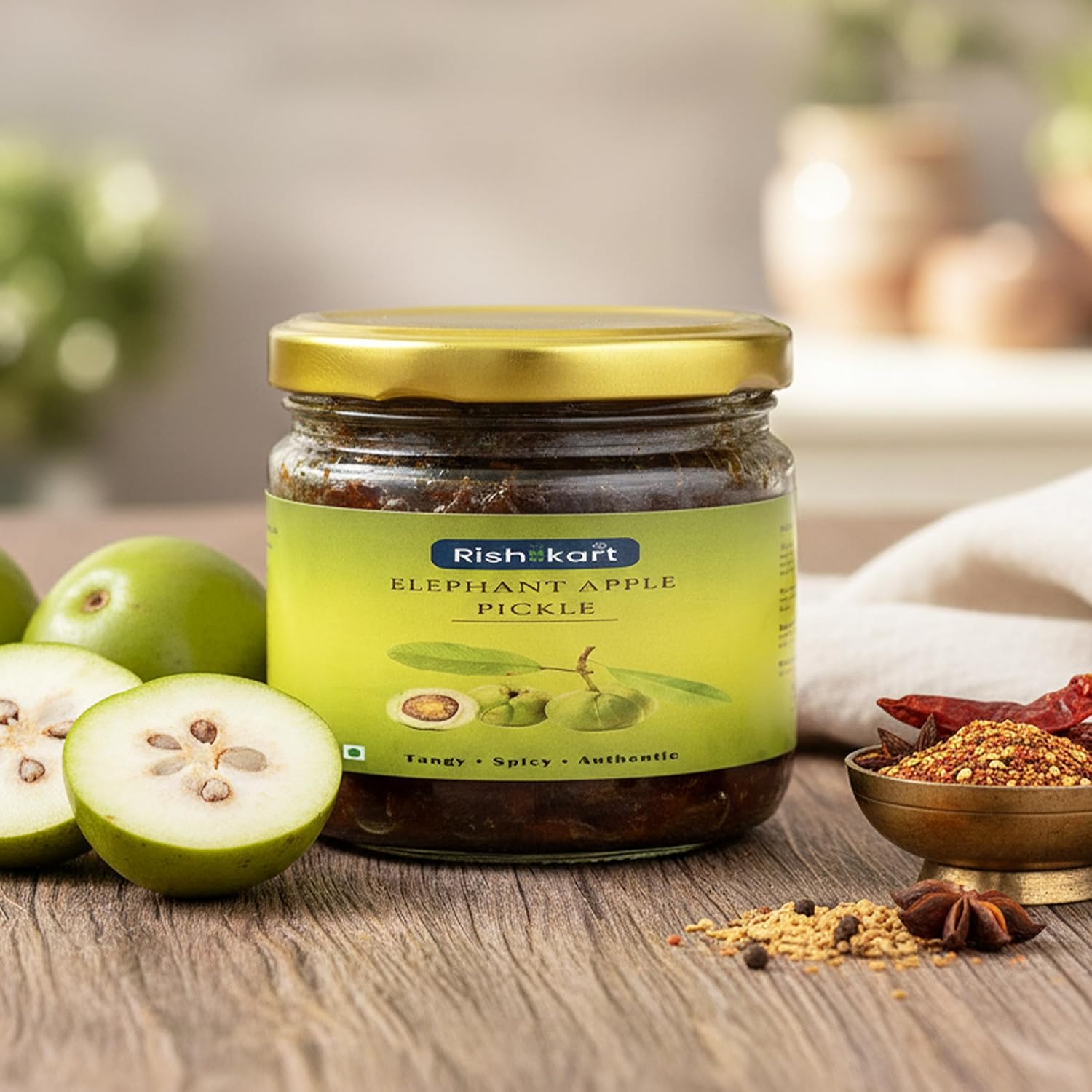 Discover the bold and nostalgic flavors of Bengal with Rishi Kart Chalta Achar (Elephant Apple Chutney), crafted using an authentic homemade recipe. Made from carefully selected chalta (elephant apple), this traditional delicacy is known for its distinctive tangy and slightly sour taste, perfectly balanced with a touch of natural sweetness. Prepared in small batches using time-honored methods, this achar combines the richness of traditional spices with natural ingredients to deliver a truly homemade experience. Its sweet, tangy, and sour flavor profile makes it a versatile accompaniment—perfect with rice, dal, roti, or even as a chutney with snacks. Free from artificial preservatives and additives, Rishi Kart Chalta Achar brings purity, tradition, and bold Bengali taste to your everyday meals.